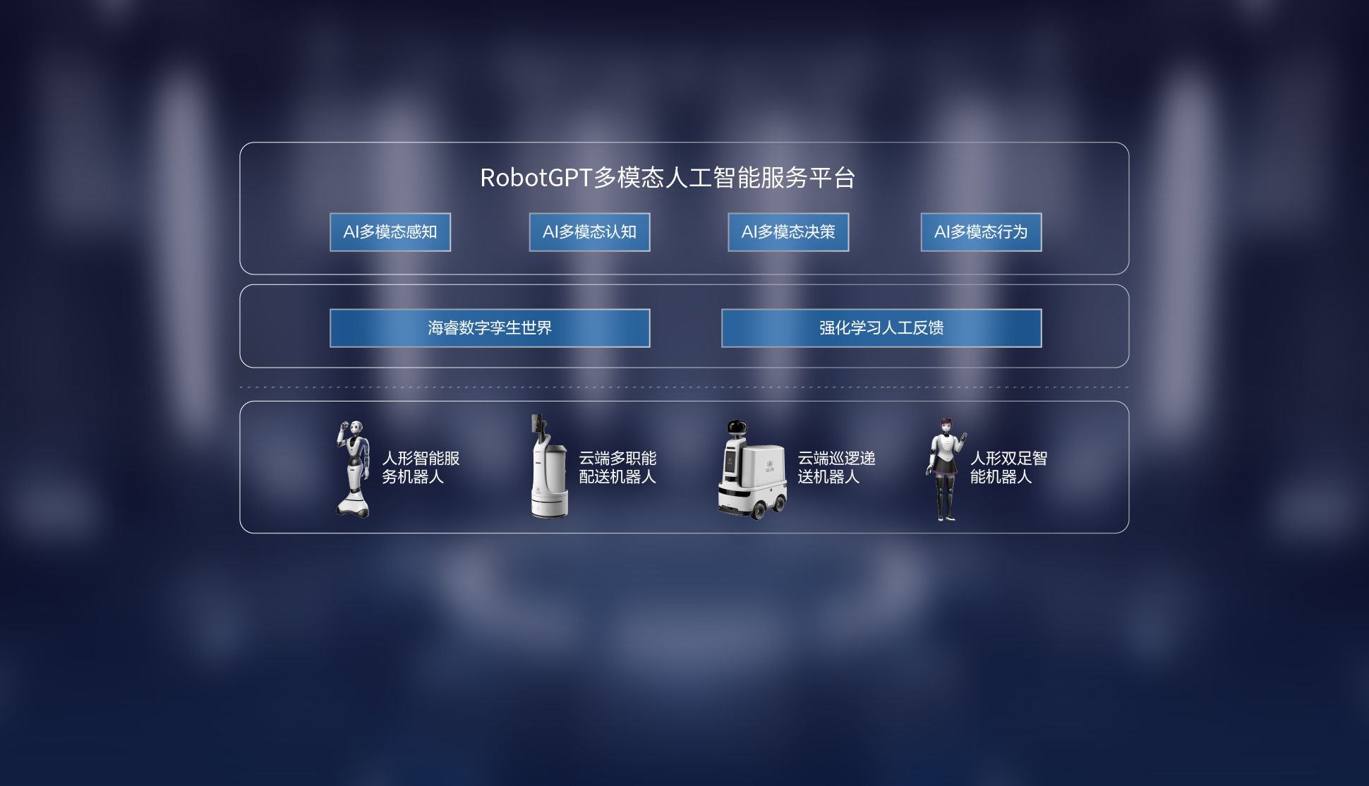 融合人工增強的智能視覺、智能語音、智能運動等人工智能能力,基于具備3D語義的數(shù)字孿生世界,為機器人運營提供各種智能服務(wù)